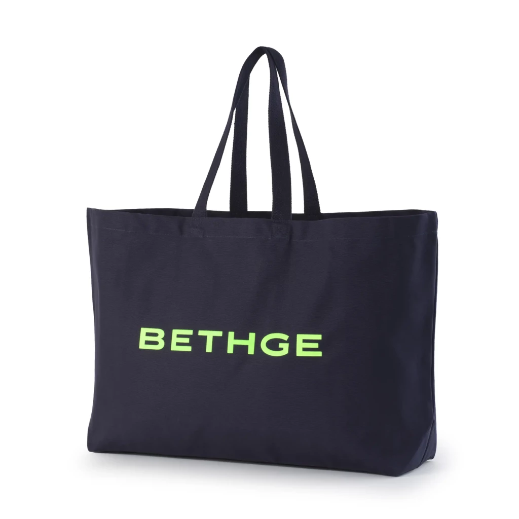 Diese praktische Tragetasche eignet sich perfekt zum Transport von Einkäufen, als Shopper Bag oder Strandtasche. Das hochwertige Canvas aus 100 % Baumwolle (475 g/m²) ist äußerst robust verarbeitet, die weichen Trageschlaufen mit einer Länge von 61 cm erlauben ein komfortables Tragen in der Hand oder über der Schulter. Mit einem Volumen von ca. 37 Liter ist die Canvas-Tasche besonders großvolumig. Zum Hingucker wird die Tasche durch die exklusive Veredelung im Siebdruck-Verfahren: Beidseitig ist das Bethge-Logo in knalligem Neonpink und Neongrün auf den dunkelblauen Stoff aufgedruckt.