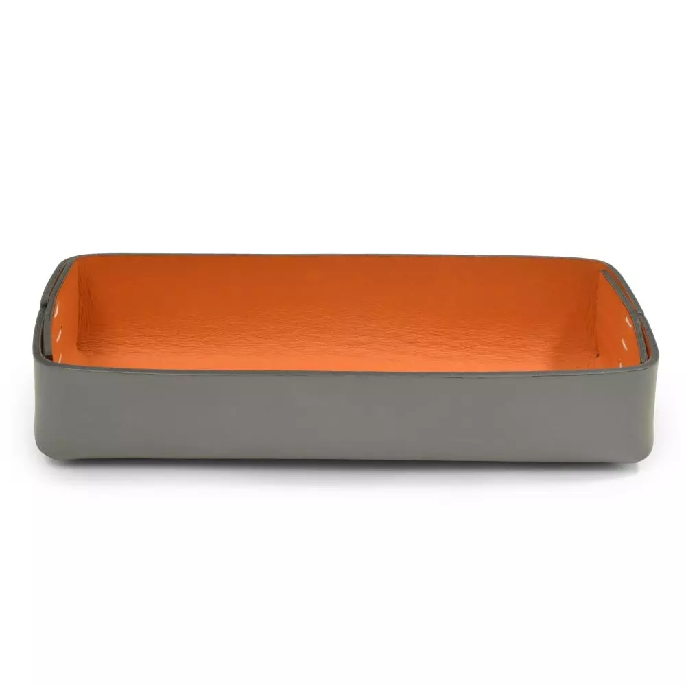 Stiftablage Stitch, Schmal, Leder, Grau/Orange