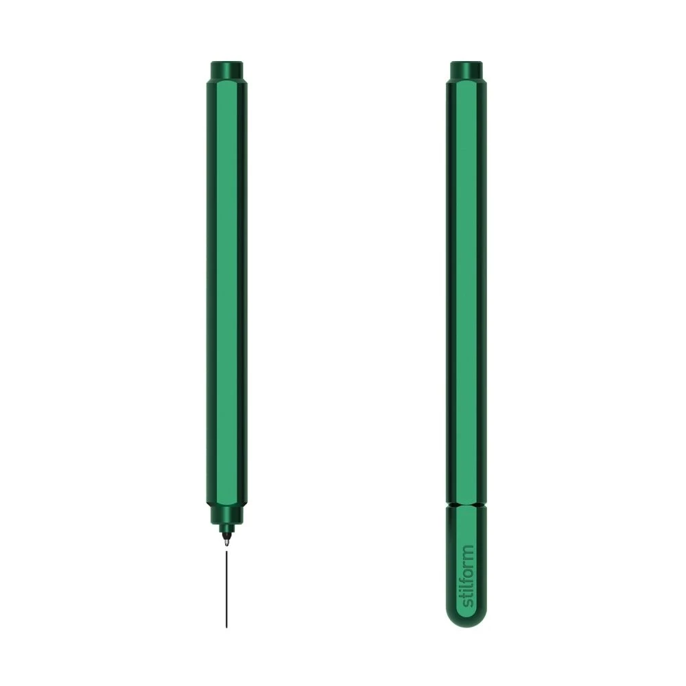 Der Aluminium Gelroller ARC der Hamburger Marke stilform überzeugt durch sein innovatives, preisgekröntes Design und den weltweit einzigartigen, selbstausrichtenden Magnetmechanismus. An beiden Enden des exklusiven Schreibgeräts sind starke N52-Magnete integriert, die dafür sorgen, dass sich die flachen Seiten entlang des Korpus und der Kappe immer perfekt in eine Linie bringen. Das minimalistische Design erzeugt einen Klick beim Schließen des Stiftes. Darüber hinaus verfügt der Gelroller durch die flachen Seiten über ein Anti-Roll-Design. So bleibt er immer dort, wo man ihn hinterlassen hat, und liegt zudem angenehm in der Hand. Das verwendete Aluminium ist außergewöhnlich leicht. So sind selbst langes Zeichnen, Illustrieren oder Schreiben ohne Schmerzen und Handkrämpfe möglich. Der Gelroller ist mit Pilot-Patronen ausgestattet, die besonders flüssig schreiben und beständig gegen Wasser und Verblassen sind.