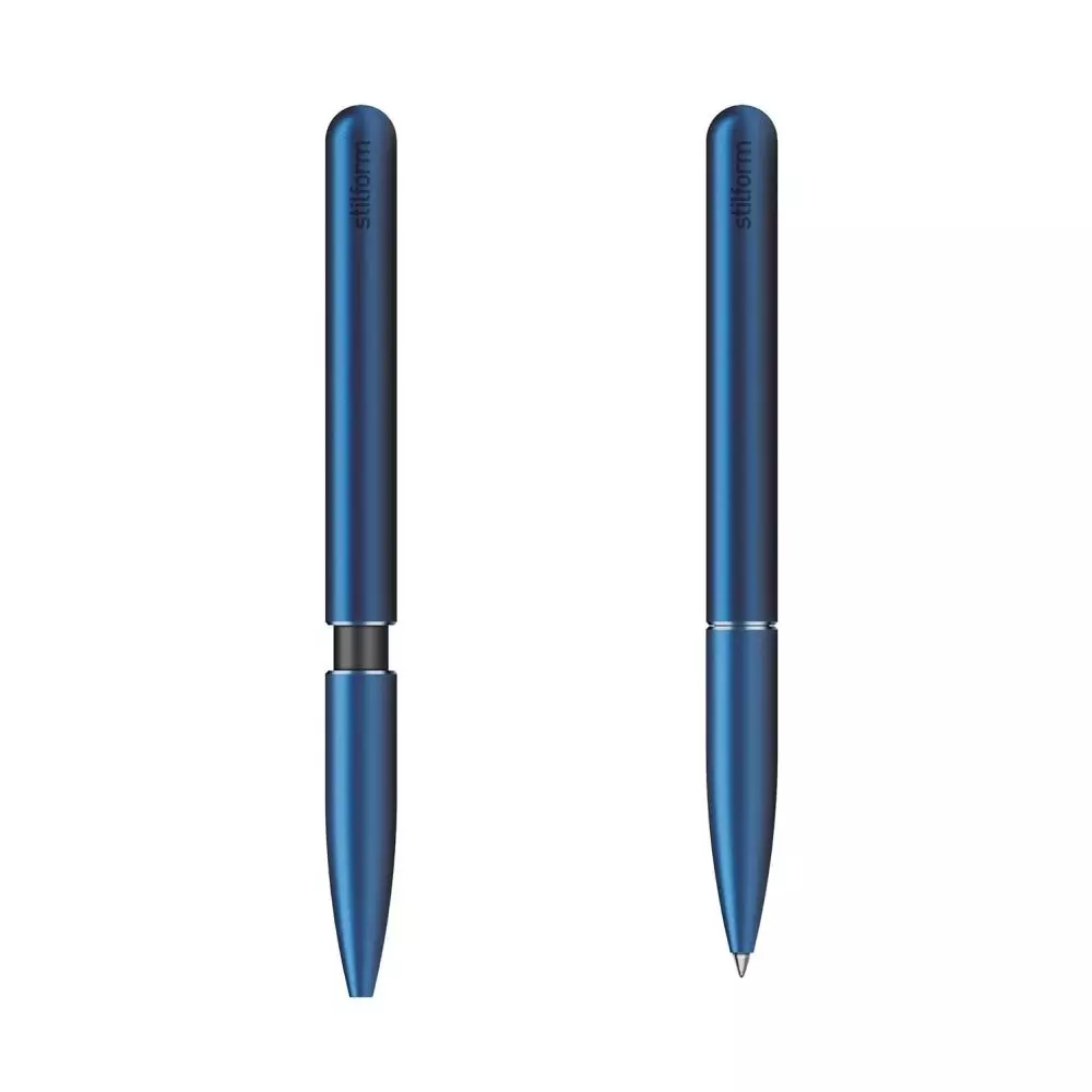 Der Aluminium Kugelschreiber PEN der Hamburger Marke stilform überzeugt durch sein innovatives, preisgekröntes Design und den revolutionären, weltweit einzigartigen Öffnungsmechanismus. Dieser wurde in detaillierter Ingenieursarbeit und Handwerkskunst entwickelt. Der bewegbare vordere Teil des Korpus wird zum Schreiben nach hinten geschoben und von einem integrierten Neodym-Supermagneten in Position gehalten. Die Bedienung des Mechanismus ist intuitiv und so leichtgängig, dass sie auch mit einer Hand möglich ist. Dies schafft eine vollkommen neue und darüber hinaus auch haptisch interessante Schreiberfahrung, die alle Kreativen und Design-Liebhaber begeistert. Wer den PEN einmal in der Hand hatte, möchte ihn nicht mehr hergeben.