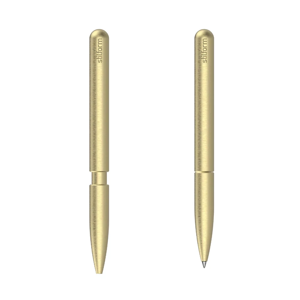 Der Kugelschreiber wird aus bleifreiem, gebürstetem Messing gefertigt und in einer matt-laminierten Premium-Geschenkbox geliefert. Die eigens für stilform in Kooperation mit Schmidt entwickelte Premium-Mine in schwarz mit Schweizer Wolframspitze sorgt für einen besonders angenehmen Schreibfluss. Kompatibel ist der PEN mit allen G2-Standard-Minen (Typ Parker). Maße: 137 x 11 x 11 mm. Gewicht: 55 Gramm. Das Design der Marke wurde bereits mit zahlreichen Preisen ausgezeichnet, zuletzt mit dem „reddot award 2022“, „Design Award 2021“ und dem „Good Design Award 2021“.