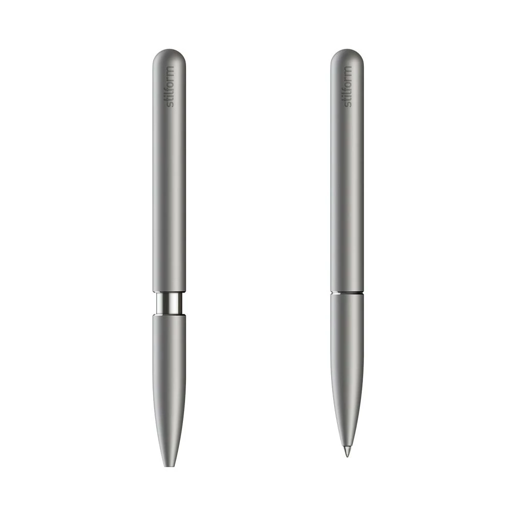 Der Kugelschreiber PEN der Hamburger Marke stilform aus seidenmattem Titan überzeugt durch sein innovatives, preisgekröntes Design und den revolutionären, weltweit einzigartigen Öffnungsmechanismus. Dieser wurde in detaillierter Ingenieursarbeit und Handwerkskunst entwickelt. Der bewegbare vordere Teil des Korpus wird zum Schreiben nach hinten geschoben und von einem integrierten Neodym-Supermagneten in Position gehalten. Die Bedienung des Mechanismus ist intuitiv und so leichtgängig, dass sie auch mit einer Hand möglich ist. Dies schafft eine vollkommen neue und darüber hinaus auch haptisch interessante Schreiberfahrung, die alle Kreativen und Design-Liebhaber begeistert. Wer den PEN einmal in der Hand hatte, möchte ihn nicht mehr hergeben.