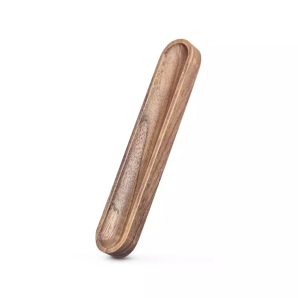 Die Stiftablage aus Nussbaum oder Ebenholz harmoniert perfekt mit dem modernen Design der stilform-Schreibgeräte und ist der optimale Ort, um diese zu verwahren – egal ob auf Ihrem Schreibtisch bei der Arbeit oder zu Hause im Wohnzimmer. Der Kontrast zwischen dem hochwertigen Holz mit natürlicher Maserung und Kugelschreiber oder Gelroller aus Aluminium oder Titan sorgt für eine ganz besondere Optik. Das Holz wird mit Bienenwachs veredelt. Länge: 16 cm. Breite: 2,9 cm. Höhe: 1,1 cm. Vertiefung Innen: Länge: 15 cm. Breite: 2 cm.