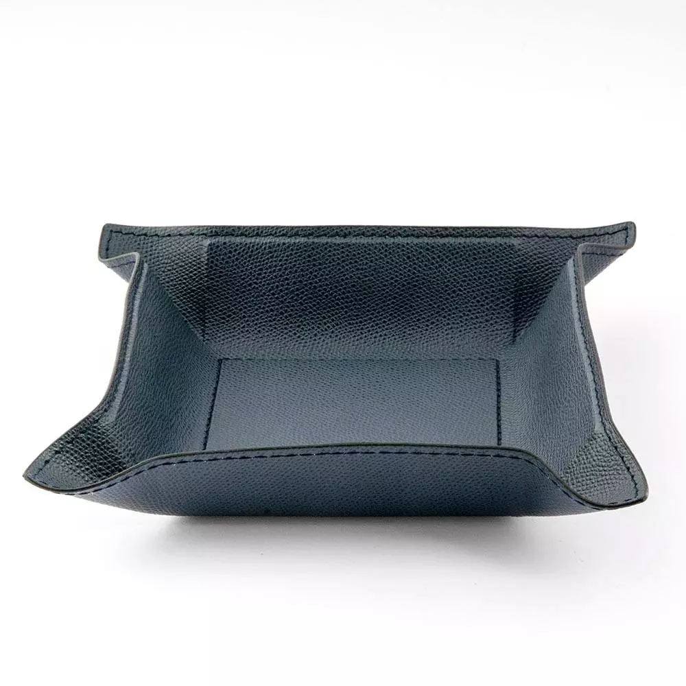 Dieser hochwertige Taschenleerer aus Leder dient als zeitlose und stilvolle Ablagefläche für Schlüssel, Schmuck, Accessoires oder andere Kleinigkeiten. Ganz gemäß dem Vorbild einer Vide-Poche (Französisch: „leere Tasche“), einem in stilvollen Haushalten von Paris bis Berlin etablierten Interieur-Accessoire, bewahrt er den Tascheninhalt auf, bis dieser wieder zum Einsatz kommt. Die Lederablage wird nach unseren Vorgaben und in traditioneller Handarbeit in einer kleinen Manufaktur für Lederwaren in Italien gefertigt – mit handwerklichem Geschick und dem Sinn für das beste Material. Der Rand des Accessoiretrays kann dank einer in das Leder eingearbeiteten, dünnen Bleiplatte nach Belieben aufgestellt, formschön drapiert oder flach ausgebreitet werden. Für einen besonderen Kontrast sorgen die farblich abgesetzten Kanten. Das Format beträgt im flachen Zustand 20,0 x 20,0 cm, der stabile Boden im Inneren hat ein Format von 10,0 x 10,0 cm.