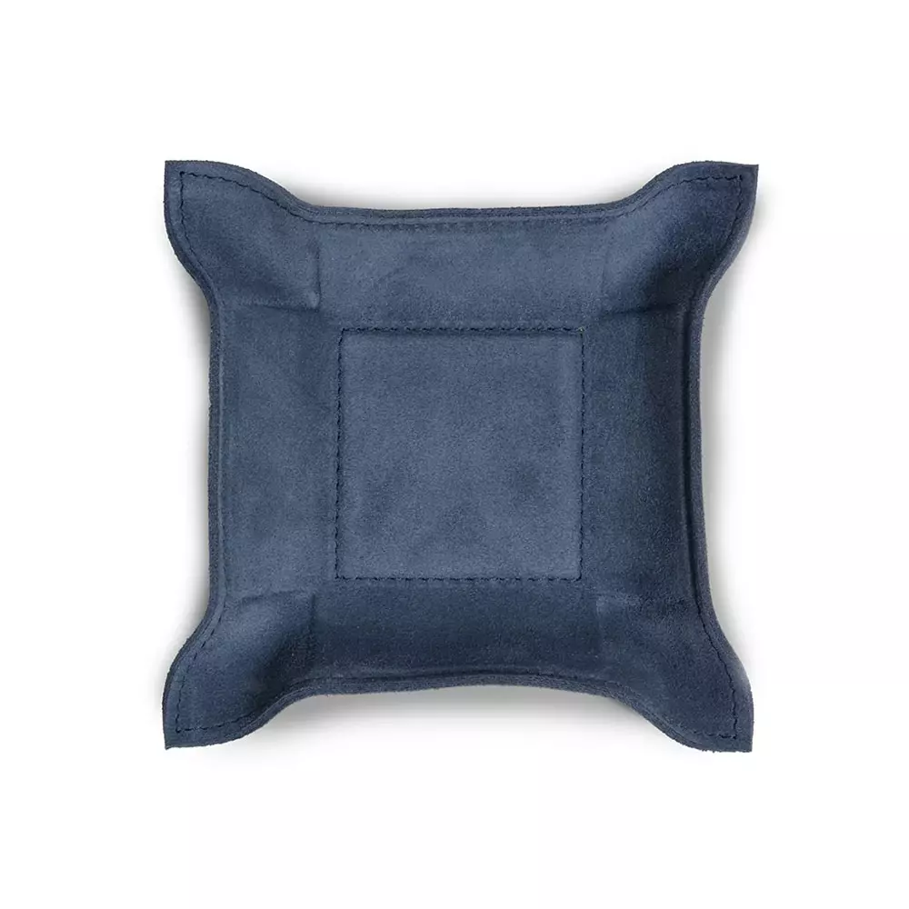 Dieser hochwertige Taschenleerer aus Veloursleder dient als zeitlose und stilvolle Ablagefläche für Schlüssel, Schmuck, Accessoires oder andere Kleinigkeiten. Ganz gemäß dem Vorbild einer Vide-Poche (Französisch: „leere Tasche“), einem in stilvollen Haushalten von Paris bis Berlin etablierten Interieur-Accessoire, bewahrt er den Tascheninhalt auf, bis dieser wieder zum Einsatz kommt. Die Lederablage wird nach unseren Vorgaben und in traditioneller Handarbeit in einer kleinen Manufaktur für Lederwaren in Italien gefertigt – mit handwerklichem Geschick und dem Sinn für das beste Material. Der Rand des Accessoiretrays kann dank einer in das Leder eingearbeiteten, dünnen Bleiplatte nach Belieben aufgestellt, formschön drapiert oder flach ausgebreitet werden. Das Format beträgt im flachen Zustand 15,0 x 15,0 cm, der stabile Boden im Inneren hat ein Format von 6,0 x 6,0 cm.