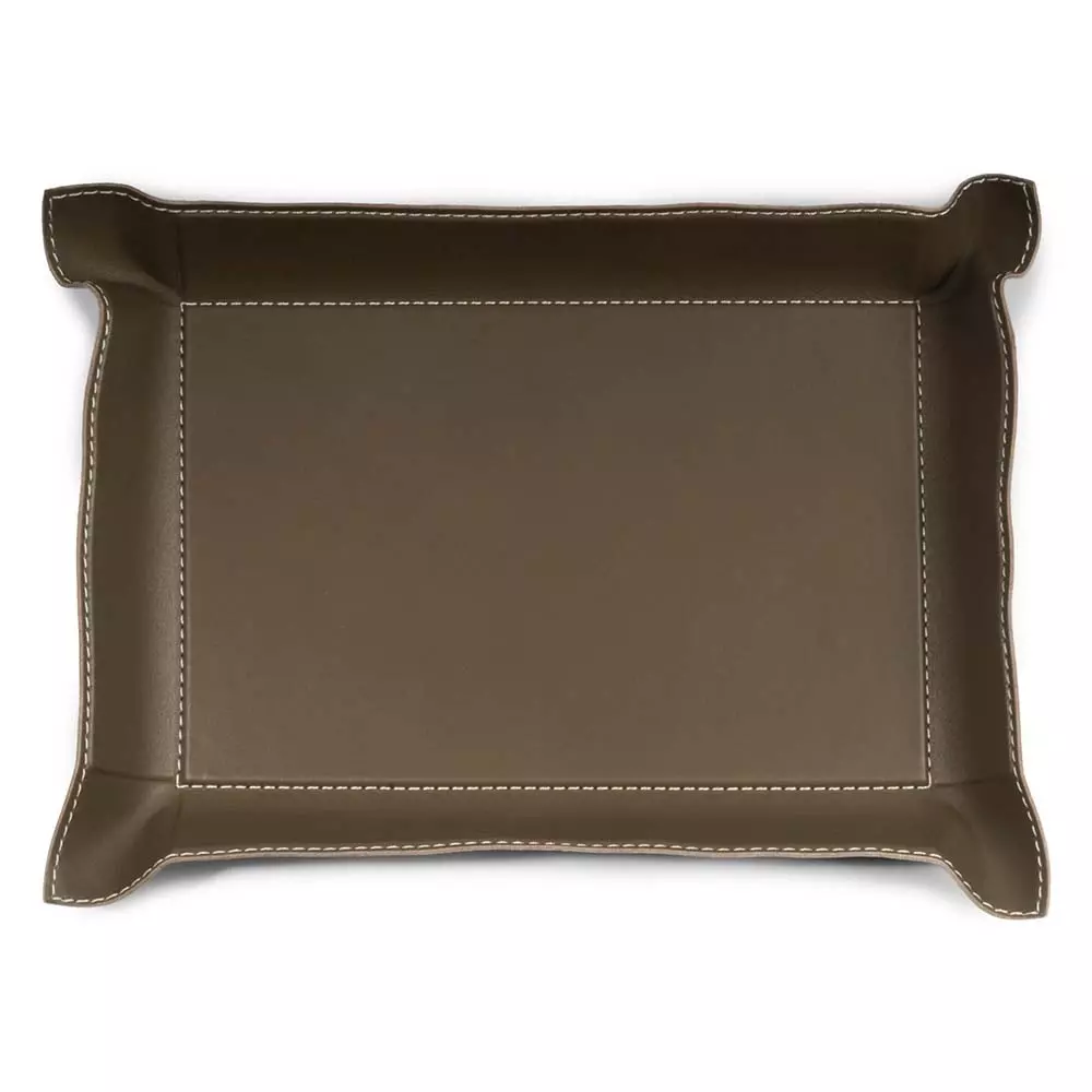 Viel Platz für kleine Accessoires bietet das elegante Ledertray mit abgesteppten Ziernähten. Klassischerweise wird der lederne Taschenleerer für Autoschlüssel, Mobiltelefone, Geldbörsen und Uhren zu Hause oder im Eingangsbereich des Arbeitsplatzes verwendet. Bekannten, Gästen oder sich selbst wird die Möglichkeit gegeben, sich der nicht benötigten Utensilien zu entledigen. Eine schöne Geste, die gern angenommen wird.