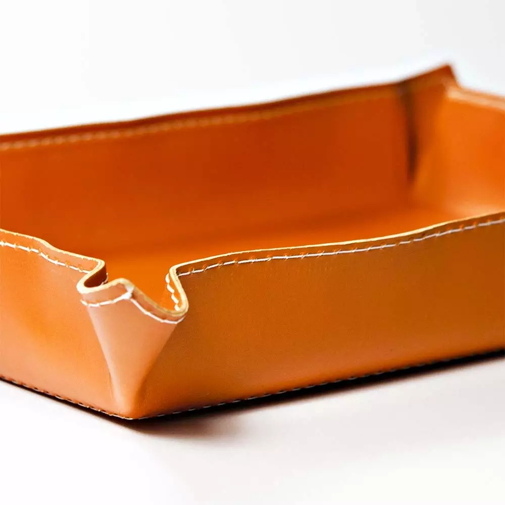 Viel Platz für kleine Accessoires bietet das elegante Ledertray mit abgesteppten Ziernähten. Klassischerweise wird der lederne Taschenleerer für Autoschlüssel, Mobiltelefone, Geldbörsen und Uhren zu Hause oder im Eingangsbereich des Arbeitsplatzes verwendet. Bekannten, Gästen oder sich selbst wird die Möglichkeit gegeben, sich der nicht benötigten Utensilien zu entledigen. Eine schöne Geste, die gern angenommen wird.