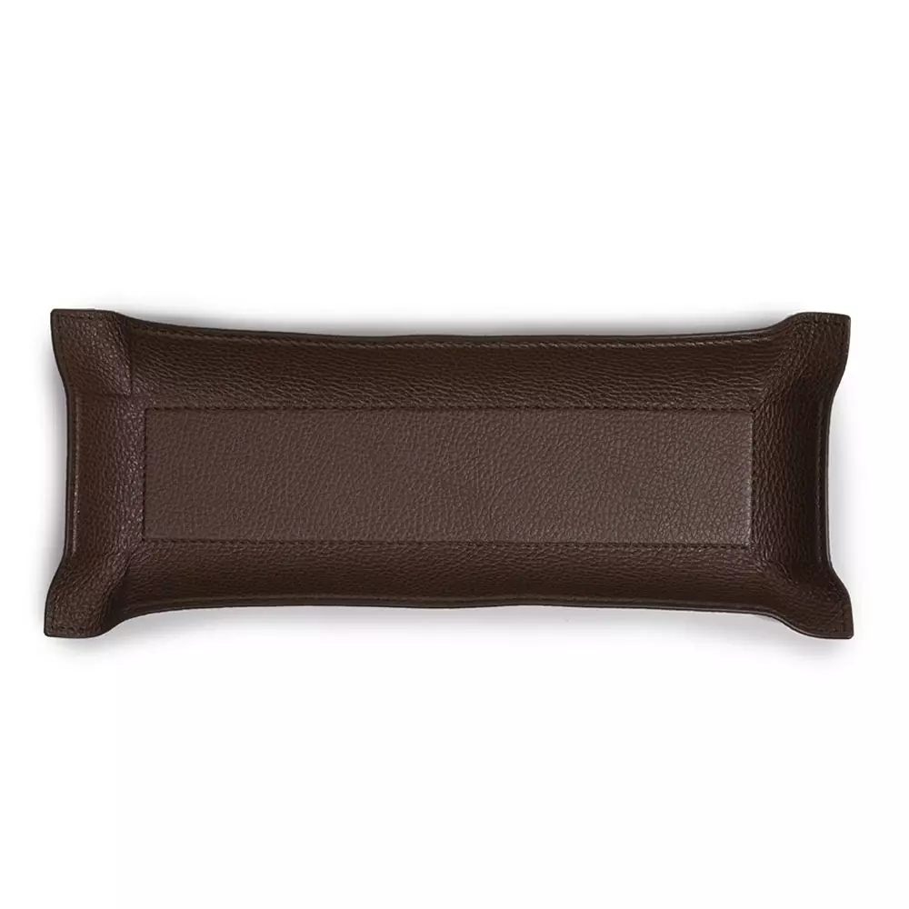 Dieser hochwertige Taschenleerer aus geprägtem Kalbsleder mit Hirsch-Optik dient als zeitlose und stilvolle Ablagefläche für Schlüssel, Schmuck, Accessoires oder andere Kleinigkeiten. Ganz gemäß dem Vorbild einer Vide-Poche (Französisch: „leere Tasche“), einem in stilvollen Haushalten von Paris bis Berlin etablierten Interieur-Accessoire, bewahrt er den Tascheninhalt auf, bis dieser wieder zum Einsatz kommt. Die Lederablage wird nach unseren Vorgaben und in traditioneller Handarbeit in einer kleinen Manufaktur für Lederwaren in Italien gefertigt – mit handwerklichem Geschick und dem Sinn für das beste Material. Der Rand des Accessoiretrays kann dank einer in das Leder eingearbeiteten, dünnen Bleiplatte nach Belieben aufgestellt, formschön drapiert oder flach ausgebreitet werden. Für einen besonderen Kontrast sorgen die farblich abgesetzten Kanten. Das Format beträgt im flachen Zustand 32,0 x 13,0 cm, der stabile Boden im Inneren hat ein Format von 24,0 x 5,0 cm.