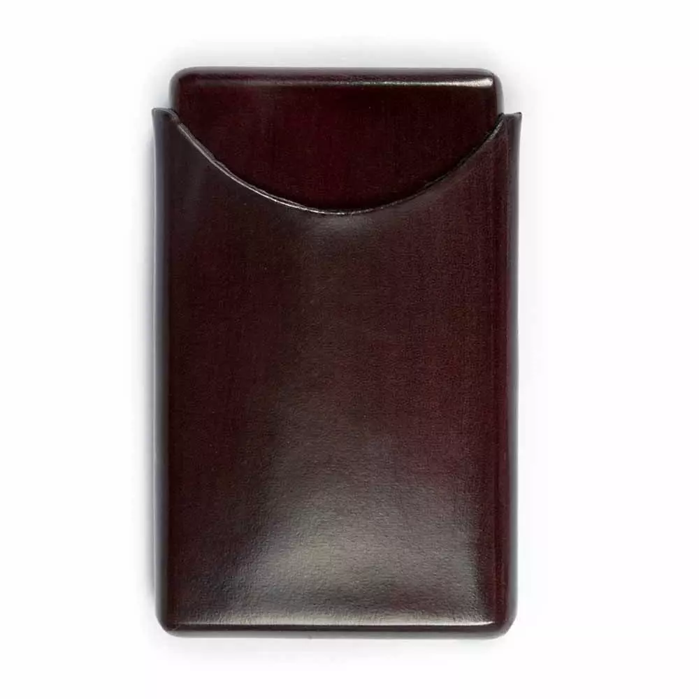 Dieses formschöne Visitenkartenetui besteht aus zwei Teilen, die ineinander geschoben werden und Ihre Visitenkarten und Kreditkarten somit optimal vor Umwelteinflüssen und Beschädigungen schützen. Durch die runde Aussparung können die Karten komfortabel entnommen werden. Das pflanzlich gegerbte, robuste Leder wird von Hand verarbeitet und mithilfe einer Holzform in die gewünschte Form gebracht – ein Verfahren, das gänzlich ohne Nähte auskommt und für eine besonders minimalistische Optik sorgt. Anschließend wird das Leder von Hand bemalt und mit Wachs veredelt, was der Visitenkartenbox eine natürliche Griffigkeit verleiht. Mit dem Gebrauch entwickelt das Leder eine schöne, charaktervolle Patina mit unterschiedlichen, nachdunkelnden Farbschattierungen.