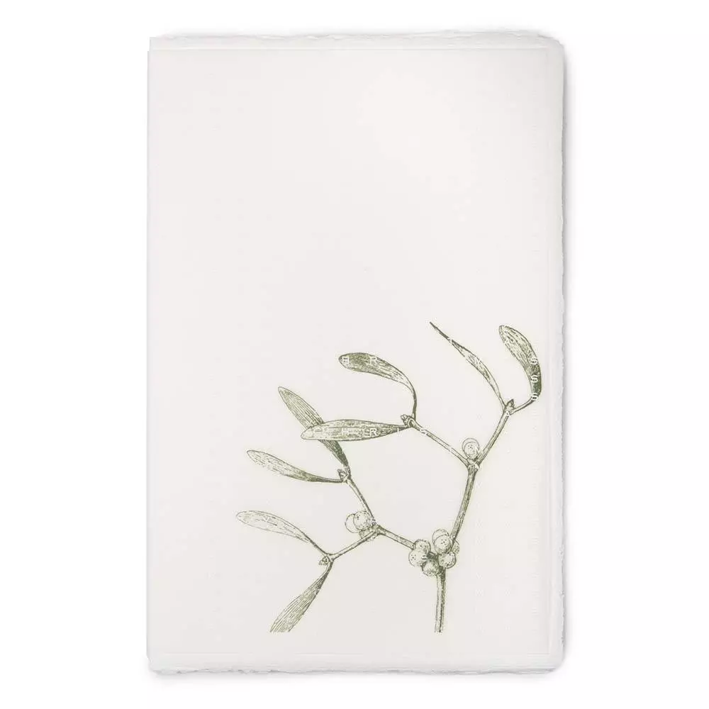 Weihnachts-Büttenkarte mit transparentem Umleger: Mistelzweig-Zeichnung wie früher mit moderner weißer "Merry Christmas"-Aufschrift. Mit passendem Umschlag aus Büttenpapier, ohne Futter.