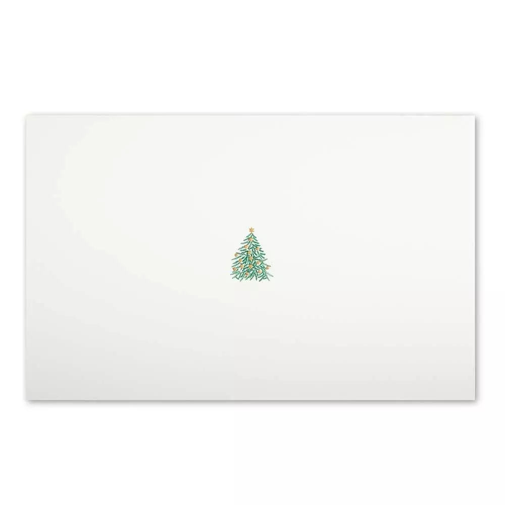 Oh Tannenbaum! Im aufwändigen Stahlstichverfahren hergestellte exklusive Weihnachtskarte mit dezentem Tannenmotiv im Format 17x11 cm. Passender Umschlag mit Seidenfutter.