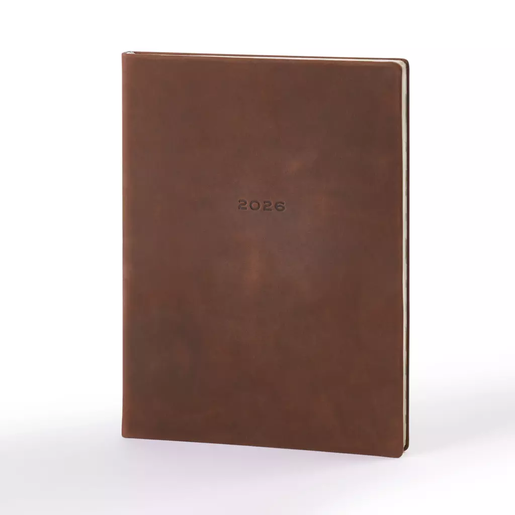 Dieser elegante Wochenplaner 2026 mit flexiblem, weichem Einband aus italienischem Rindsleder wird in unserem hauseigenen Atelier handgefertigt und verbindet einzigartiges Design mit Lederhandwerkskunst und hoher Expertise in der Papierverarbeitung und Buchbinderei.