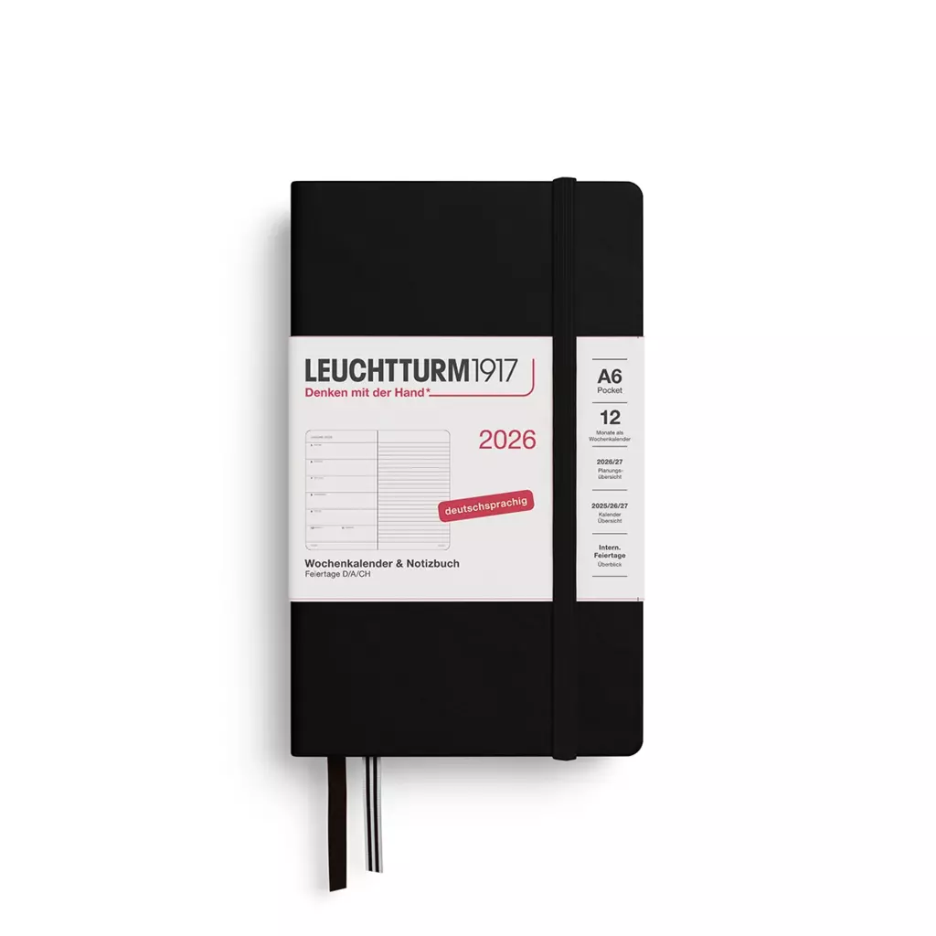 Leuchtturm1917 Wochenkalender & Notizbuch Pocket (A6) 2026 – Schwarz, Deutsch