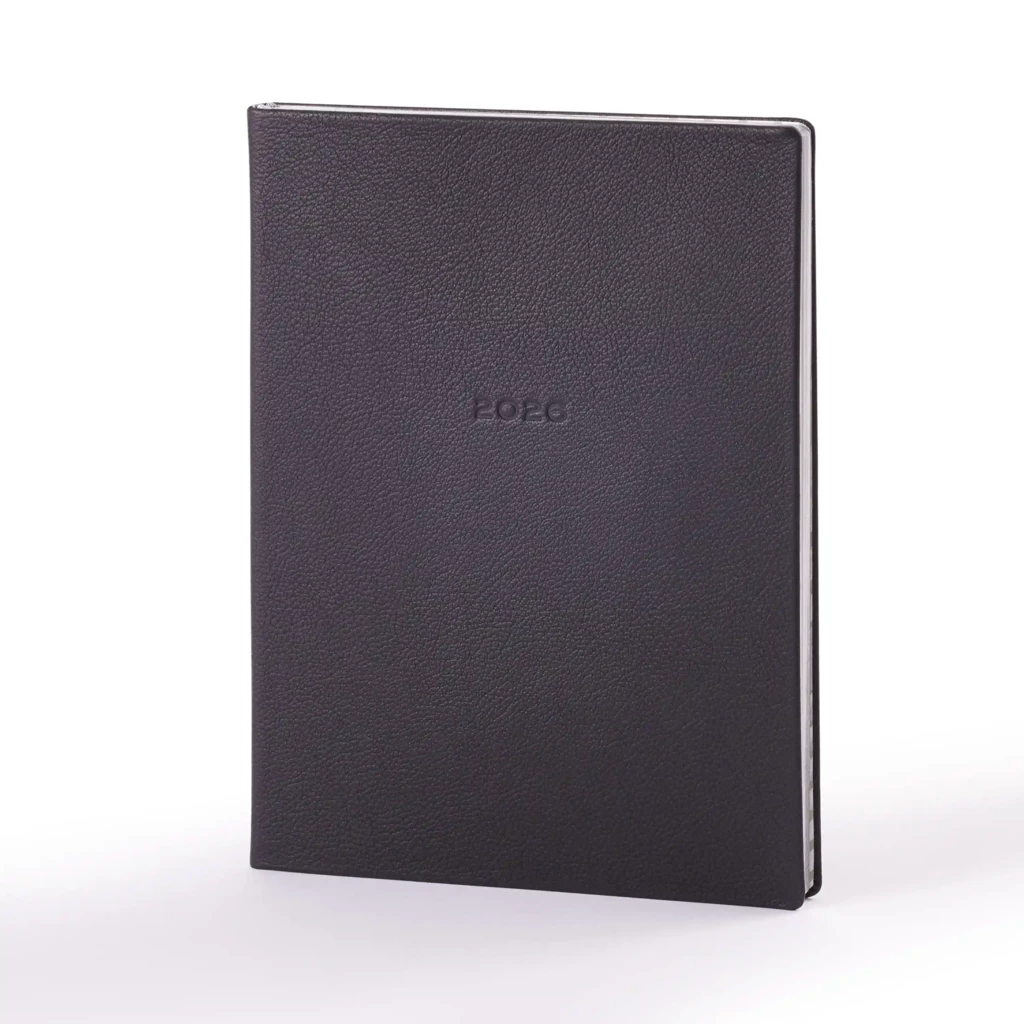 Dieser elegante Wochenplaner 2026 mit flexiblem, weichem Einband aus italienischem Rindsleder wird in unserem hauseigenen Atelier handgefertigt und verbindet einzigartiges Design mit Lederhandwerkskunst und hoher Expertise in der Papierverarbeitung und Buchbinderei.