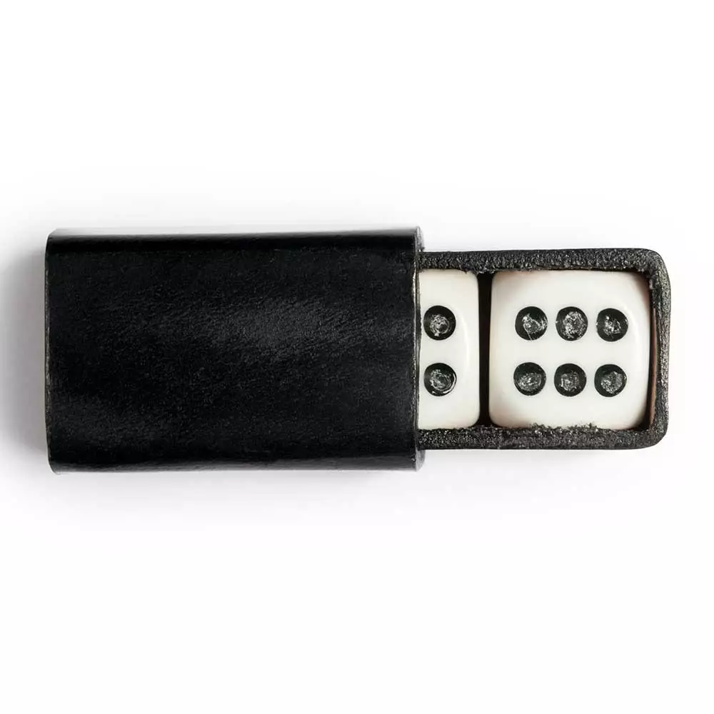 Würfelspiel mit 2 Würfeln im Lederetui, Schwarz